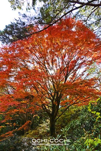 今日も今日とて花逍遥 京都の寺院などの計算され洗練された紅葉とちがい 山の中の紅葉はワイルドです 伽藍の屋根やお堂の壁など対象物が何も無いため スケール感がでないので写真を撮るのが難しい だからと言って人は入れたくないし… この木も大きいんですよ…