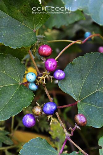 川ぞいに色づく野葡萄・・ 美しいのは紅葉だけじゃない・・ ボクがしゃがみ込んで写真を撮っていたら、 後から来たお爺が、何があるのかと覗き込む。 そんなことを繰り返していたら、痺れを切らしたのか、 お爺が追いついて来てボクに訪ねて来た。 「にいち…